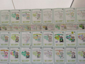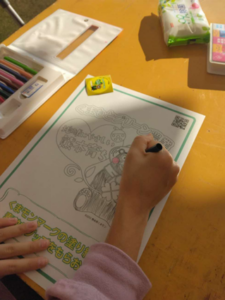 なかでも塗り絵コーナーは大人気!歌をうたいながら大喜びで塗り絵をする小さなお子様や、親子で力を合わせて絵を仕上げたご家族、童心に帰って久しぶりの塗り絵を楽しむご年配の方など、ブースを訪れた皆さんは思い思いに、色とりどりのくまモンマークを仕上げていました。